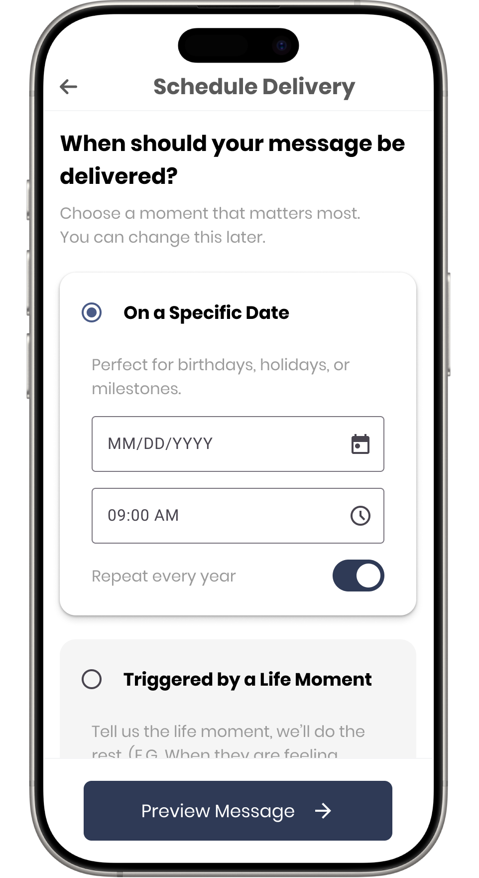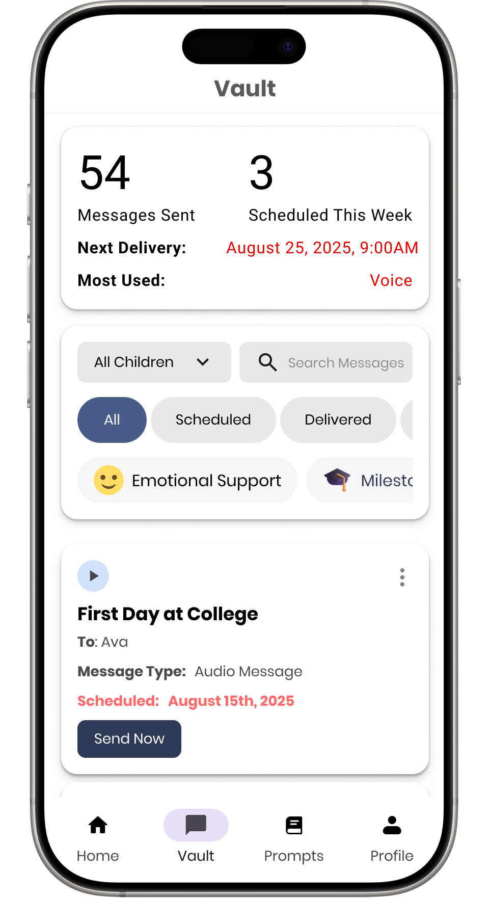 Record Video/Audio/Text Messages to send messages to your loved ones.